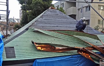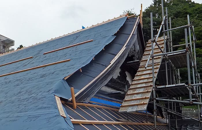 瓦を下ろした後の屋根下地を剥がさずに、その上に新しい下地を構築します。