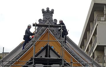 瓦からチタンに葺き替えたことで、屋根の重量は約1/13に軽減されました。