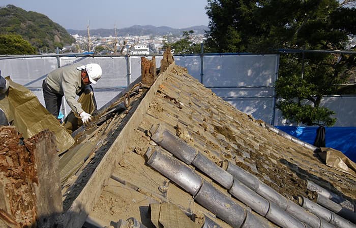 昭和29年(1954年)に建立された瓦屋根は老朽化が激しく、地震時の崩落が心配されていました。