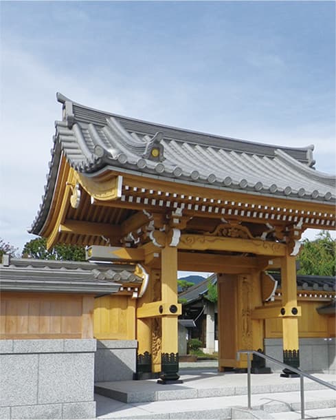 人々を迎え、最も多く見られる山門。伽藍の景観に溶け込みながらも地震に強い堅牢さ、手すりなどバリアフリーも考慮した優しい山門をご案内致します。