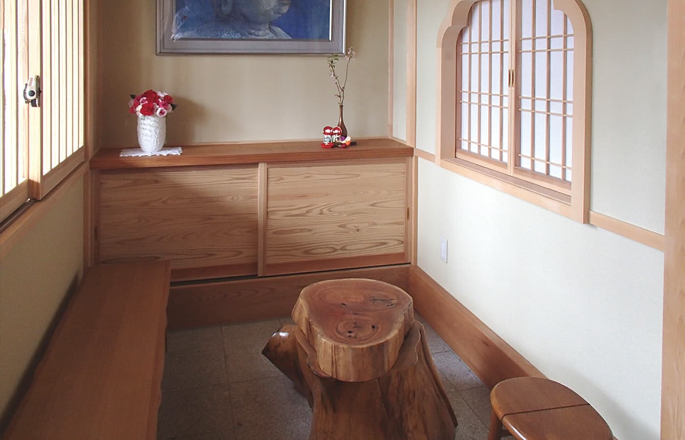 玄関に靴を脱がなくても接客が出来る応対コーナーを設けるなど、様々なご要望に柔軟にご対応致します。