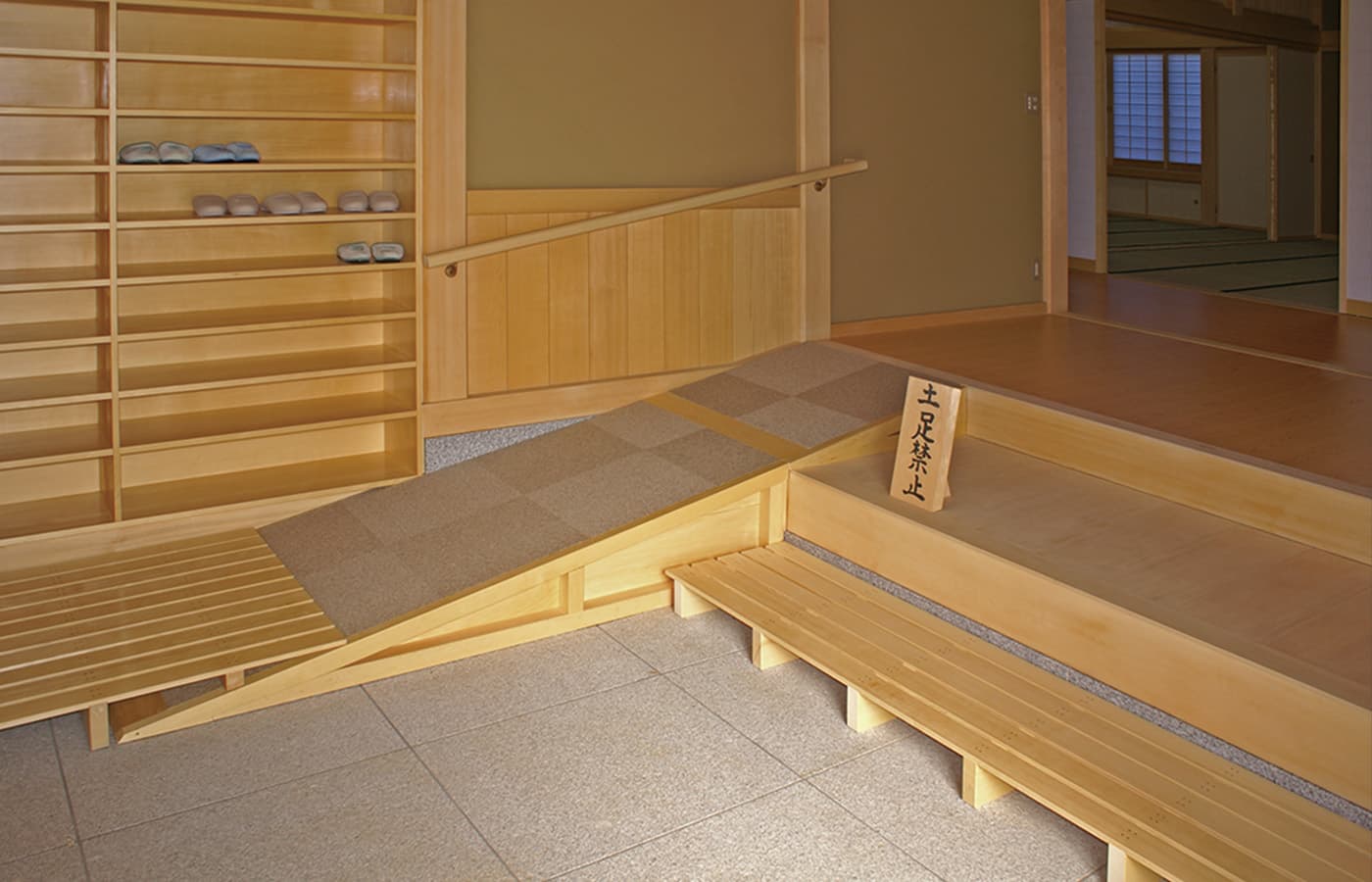 玄関前だけでなく、室内にもスロープの設置をすることで、ご高齢の方や車椅子の方も移動をスムーズに行えます。
